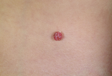 Condylomata acuminata present most commonly in the perianal area as flesh-colored, soft, verrucous papules ( Fig. 15-32 ) measuring 1 to 5 mm in diameter. The lesions are usually multiple, and “mirror image” lesions may be noted on each side of the anus. Other areas of involvement include the glans penis, penile shaft, scrotum, and vulva. Vaginal and cervical involvement are appreciable only with internal examination. Occasionally, lesions may enlarge rapidly and present as large, exophytic, cauliflower-like masses ( Fig. 15-33 ). Childhood condylomata are usually incidentally noted during diaper changes, toileting, bathing, or physical examinations. The lesions are usually asymptomatic, but irritation, bleeding, and pain may occur. The differential diagnosis of condylomata acuminata includes MC, epidermal nevus, skin tag, and pseudoverrucous papules and nodules. Infantile perianal pyramidal protrusion is a pyramid-shaped, flesh-colored to pink soft-tissue swelling ( Fig. 15-34 ) that appears in the medial raphe of girls and may represent a peculiar form of lichen sclerosus et atrophicus. The distribution, appearance, and solitary nature of this lesion should distinguish it from condylomata.