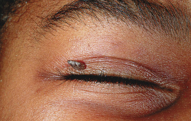 Common wart. This lesion has a stalk, and is termed a filiform wart.