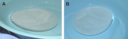 Phase I results evaluated a series of saline breast implant shells. Dry saline implant shells, depending on implant size and style, ranged from 10 to 40 g in weight. The more common implant sizes are shown in Table 1 .