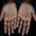 Multiple discrete and confluent keratotic papules present bilaterally on palms (Courtesy: Dr. Anirban Das)