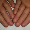 No system is spared in chronic arsenicosis, but skin is the most predominantly affected organ. The cutaneous manifestations are of diagnostic value and include pigmentary changes; keratotic papules and plaques; and various cutaneous malignancies. The pigmentary changes are reported to be the earliest and the commonest of all dermatological manifestations. The pigmentation can be diffuse (with trunk being affected most severely) or localized affecting skin folds. Another common pattern of pigmentation is fine hyperpigmented macules, known as ‘rain-drop pigmentation’. Simultaneously, depigmented macules appear on normal skin or hyperpigmented background resulting in a distinctive appearance of ‘leucomelanosis‘. Pigmentary changes is noted in mucosa too and blotchy pigmentation affecting the undersurface of the tongue or buccal mucosa is common. Another important examination finding is Mee’s lines (transverse bands of true leukonychia) in the fingernails and toenails [3].